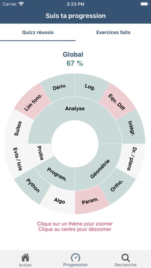 - classement des exercices en fonction du statut "à faire", "à refaire" ou "fait"