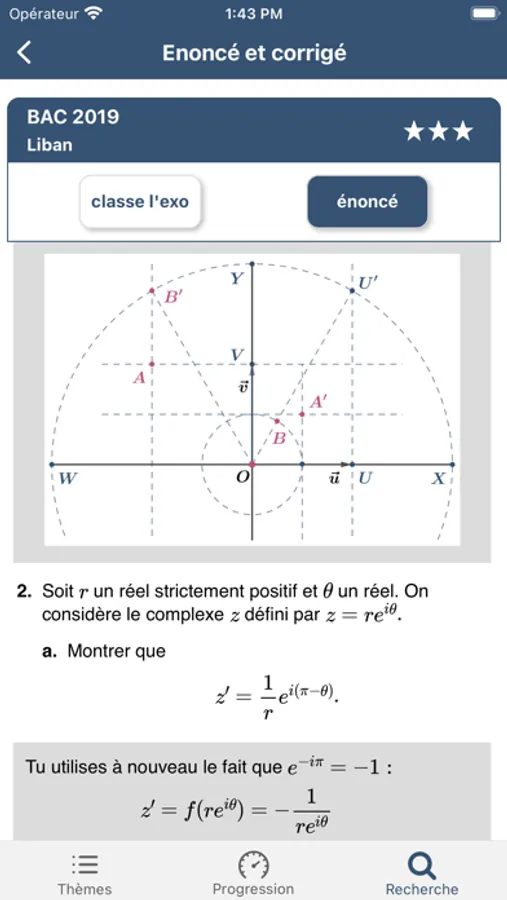 - accès ergonomique aux exercices en mode énoncé ou en mode entrelacé énoncé + corrigé