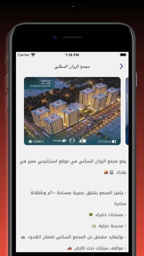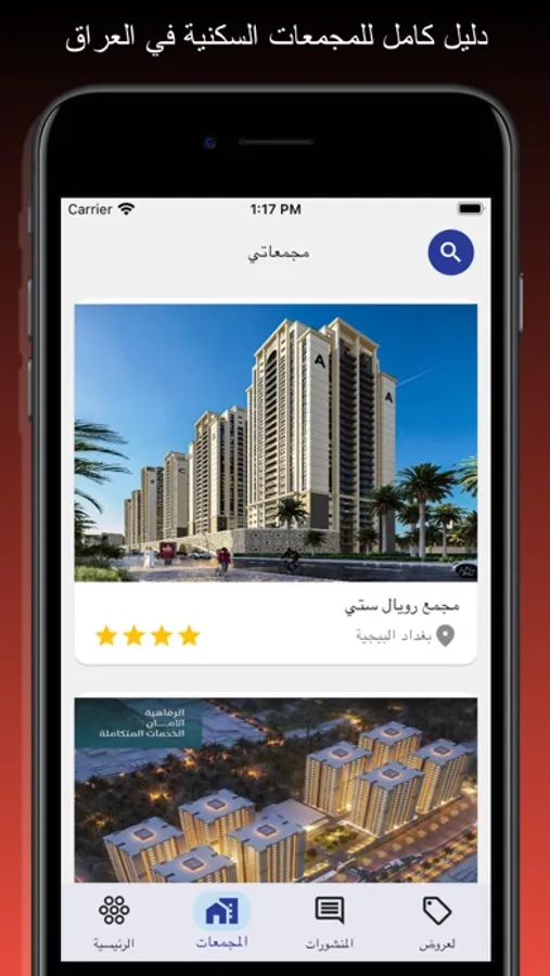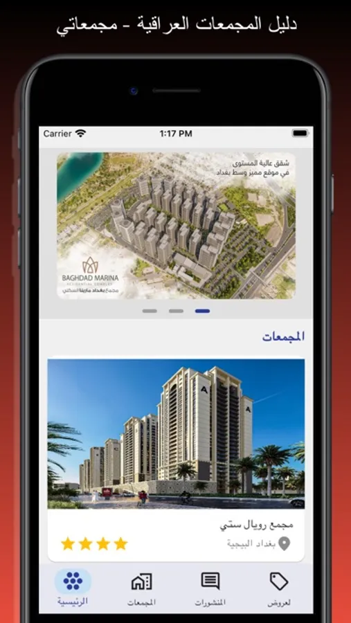 يوفر التطبيق امكانية تصفح المجمعات السكنية في العراق و عرض تفاصيلها ومعرفة شاملة حولها.