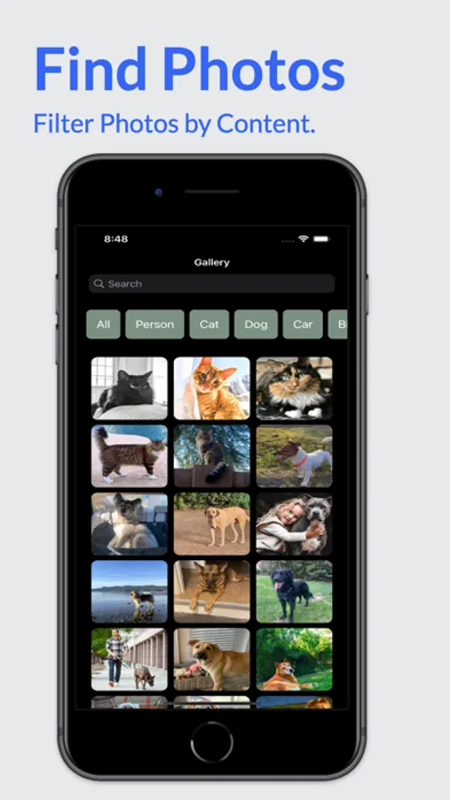- Automatically sort and filter your photos by their content