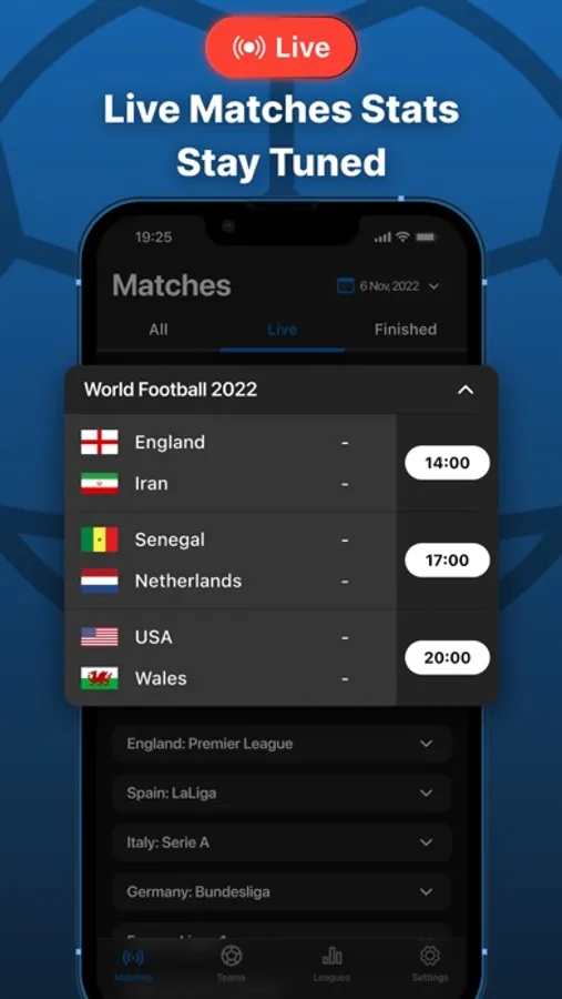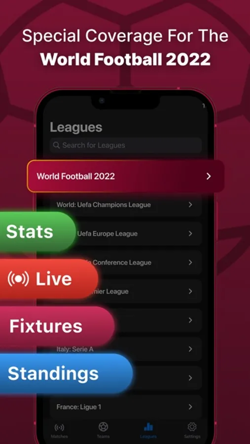 — The best leagues and competitions in the world (World Football Cup, Champions League, Europe League, Premier League, LaLiga, Serie A, Bundesliga, Ligue 1 and more)
