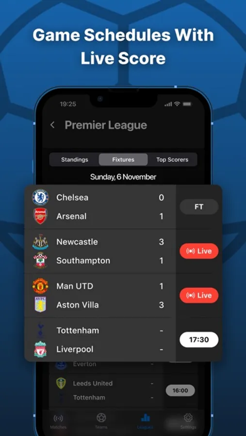 HesGoal is the go-to app to follow all the competitions with live-stats, fixture schedules, results of matches, standings, and more.