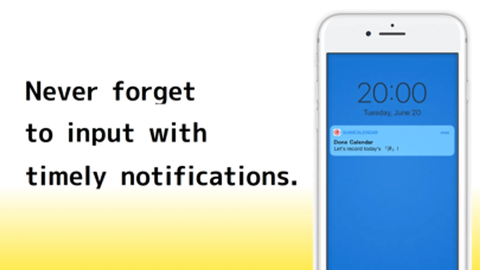 Set the habits you want to start and mark them with a "済" stamp every day you accomplish them. With a simple interface, it's easy to use!