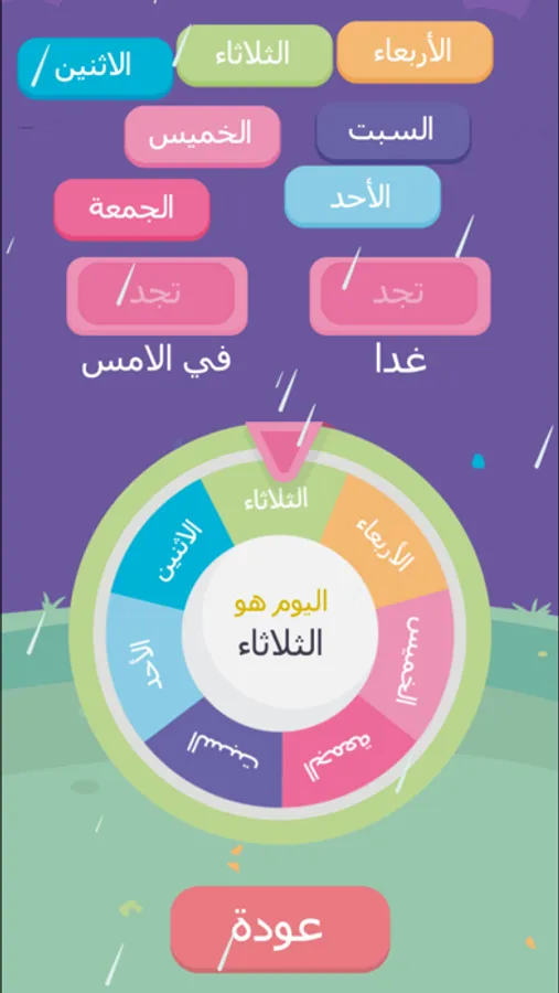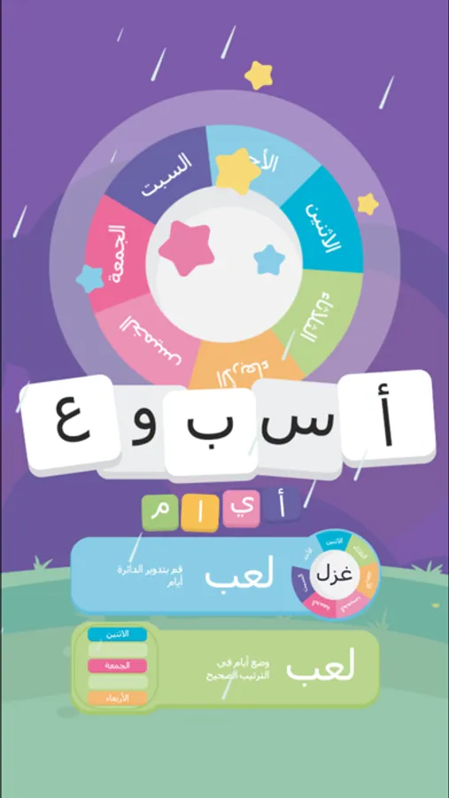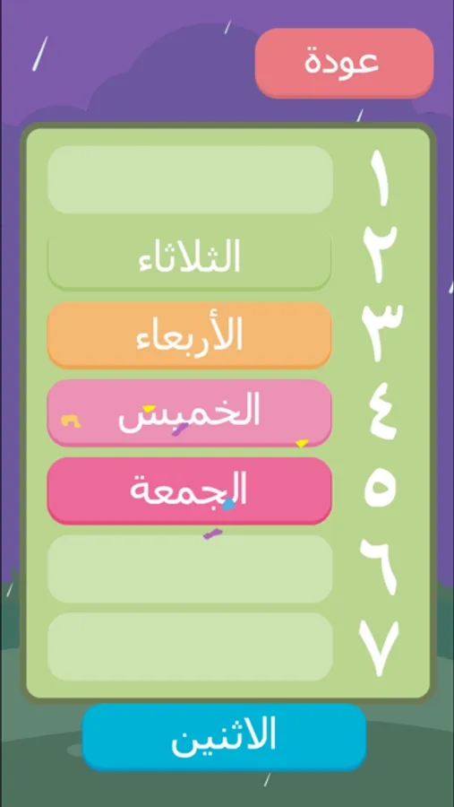 التطبيق يعلمك اسماء الايام للاطفال على اللغة العربية
