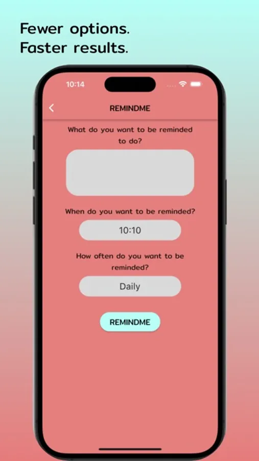 There are hundreds of reminder apps and they all do more than this one. Make new reminders faster with fewer fields to fill - save the reminder and when to be reminded. That’s it.