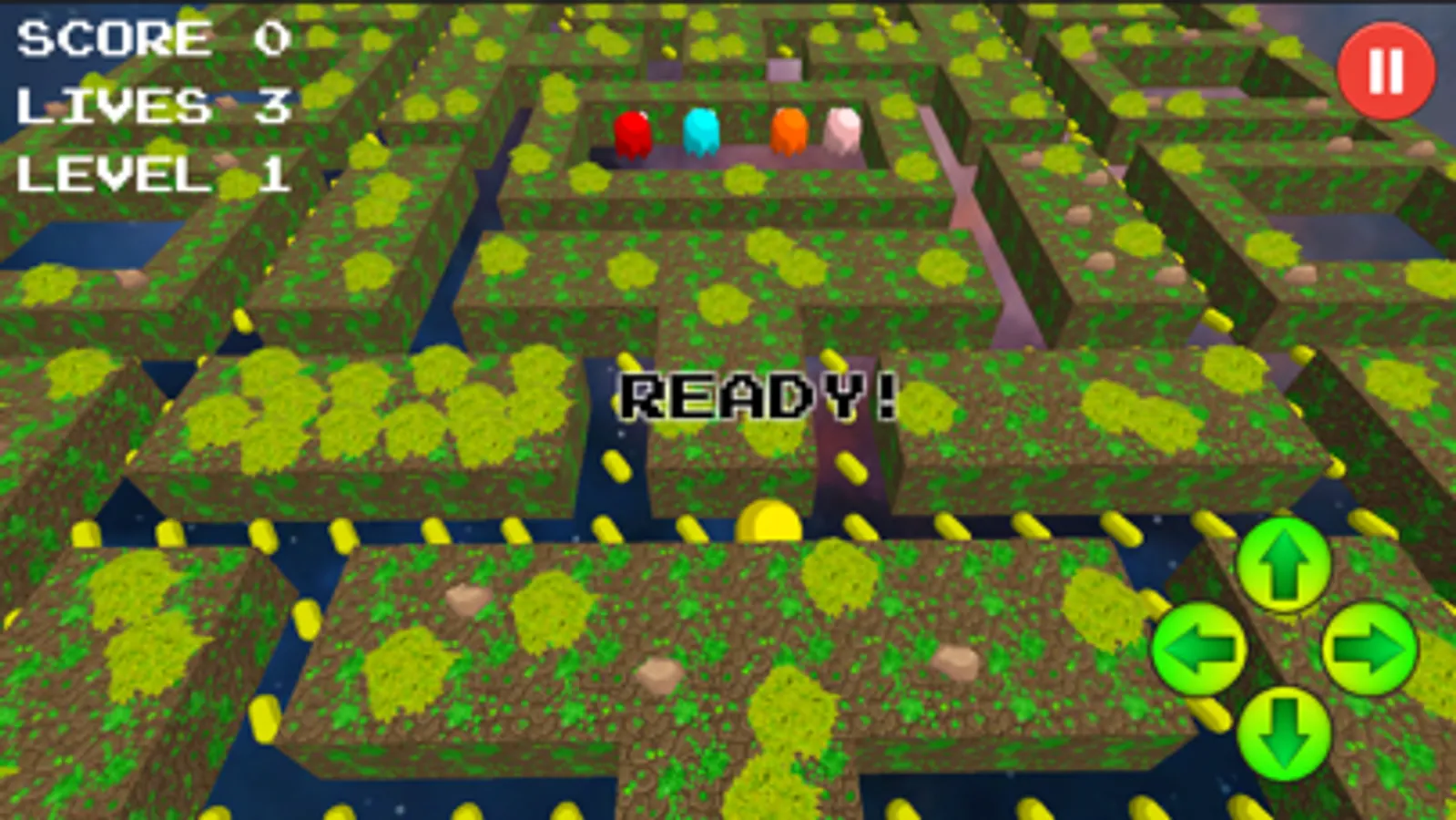 Role-playing game, move in a multidimensional maze in space to collecting gold and dodging or fighting ghosts.