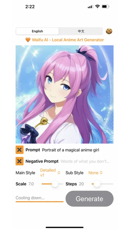 Waifu Art AI is an anime character generator using diffusion AI model, running 100% offline to keep the user's privacy and free of charge. Requires a 6GB RAM device, such as the iPad M1/M2, iPhone 13 Pro, iPhone 14 or iPhone 14 Pro.