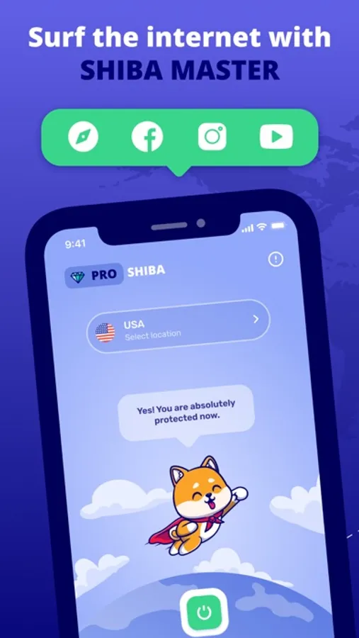 Shiba Master encrypts your Internet connection so that third parties cannot track your online activity. The app makes your connection more secure than with a regular proxy server. It keeps your online presence safe, especially when you're using public, free Wi-Fi networks. You can use any of our fast servers at any time for reliable protection.