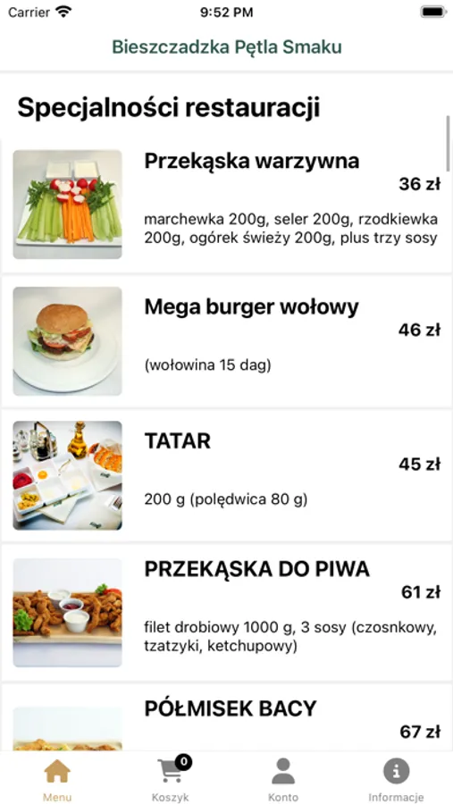 Aplikacja do zamawiania z Bieszczadzkiej Pętli Smaku.