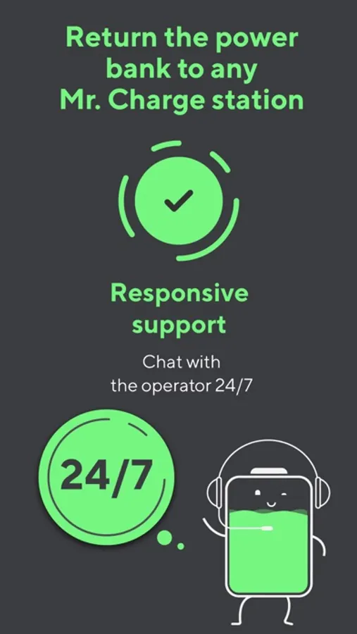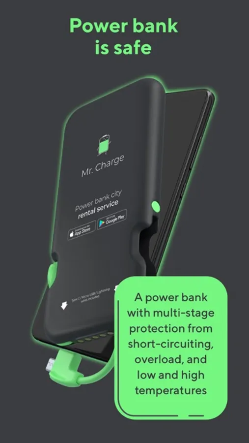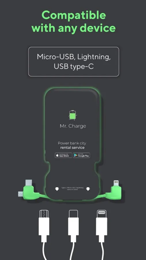 People often find their smartphone discharged at the most inopportune moment. Our application will let you forget about discharged smartphones or other gadgets. Due to the wide network of charging stations in the city, our users will be able to get a Mr. Charge power bank at one location, and return it at another location, without wasting their precious time waiting for the smartphone to charge. We want and make sure that users of our service always remain in touch and enjoy communicating with their loved ones.