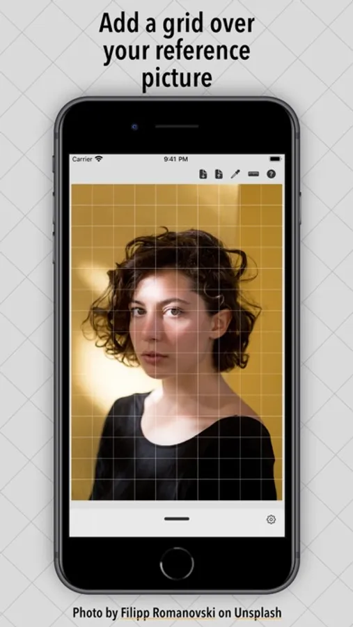 Load your reference image from your photo library, then configure the drawing grid to your liking.
