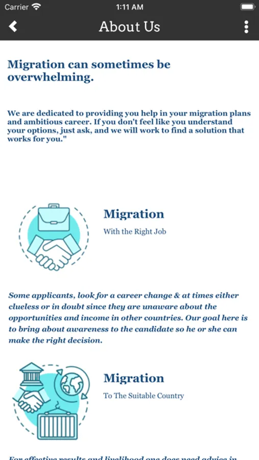 Migration Programs, Solutions and Updates at your finger tips. The first ever app to assist you all the way with your migration plans through reliable and trusted sources in UK, Europe, Canada and other countries. Download our app and aspire to build a dignified, safe and better future cuz " Life is short and the world is wide".