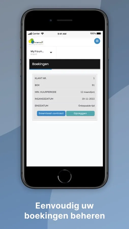 De HollebolleboX App is een persoonlijke app voor HollebolleboX klanten. Wanneer u bij HollebolleboX een unit huurt, kunt u via de app uw boekingen beheren, facturen inzien en downloaden, en ook de toegangsmodule openen met 1 druk op de knop.