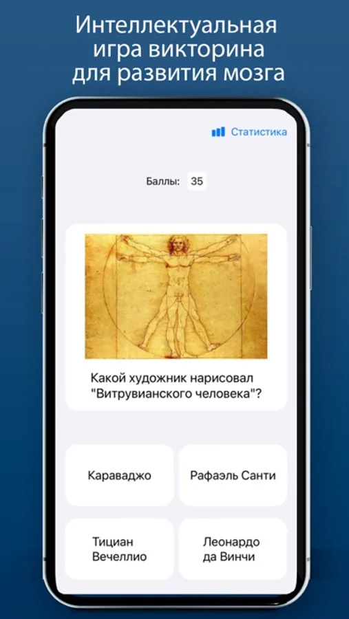 Интеллектуальная игра викторина «Эрудит» - это квиз в формате вопрос ответ, где нужно отвечать на вопросы узнавая интересные факты, развивать мозг.