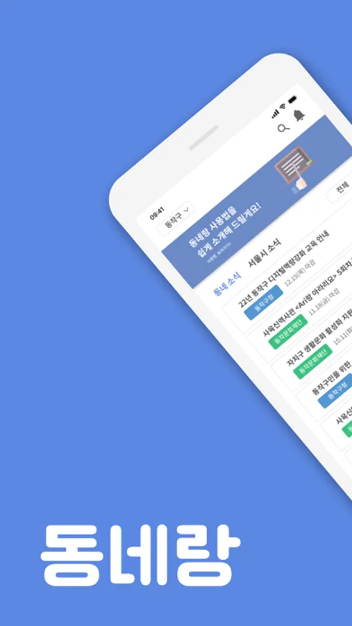 여러 홈페이지에 흩어져 있는 시민을 위한 각종 소식들, 내가 필요한 정보만 쏙쏙 한눈에 볼 수 있는 방법은 없을까요? 동네랑은 더 좋은 동네를 꿈꾸며 개인 맞춤형 공공 정보와 커뮤니티를 제공하는 서비스입니다.