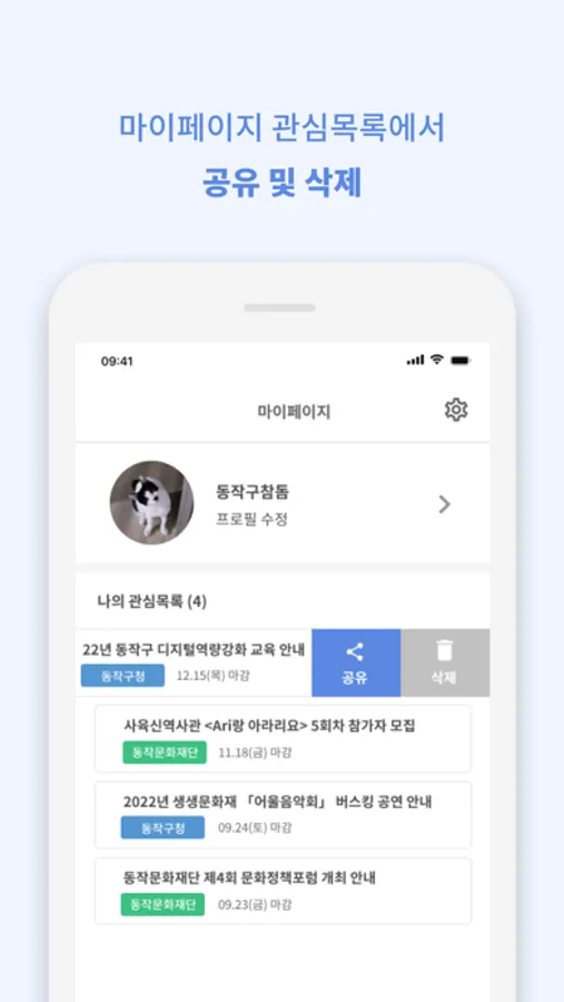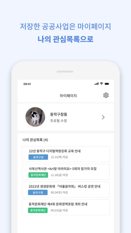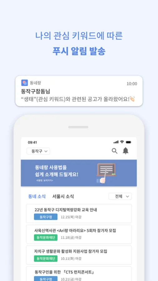 - 관심 키워드와 개인 정보를 설정하고 맞춤형 공공소식 알림을 받을 수 있어요.