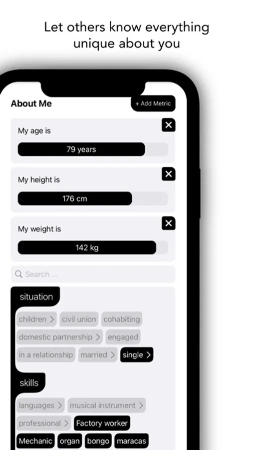 Finding your ideal friend is now only a simple search away. No more endless swiping or hidden algorithms - Chemi allows you to sort and filter by the qualities you're looking for in a person, helping you identify those most compatible with you instantaneously.