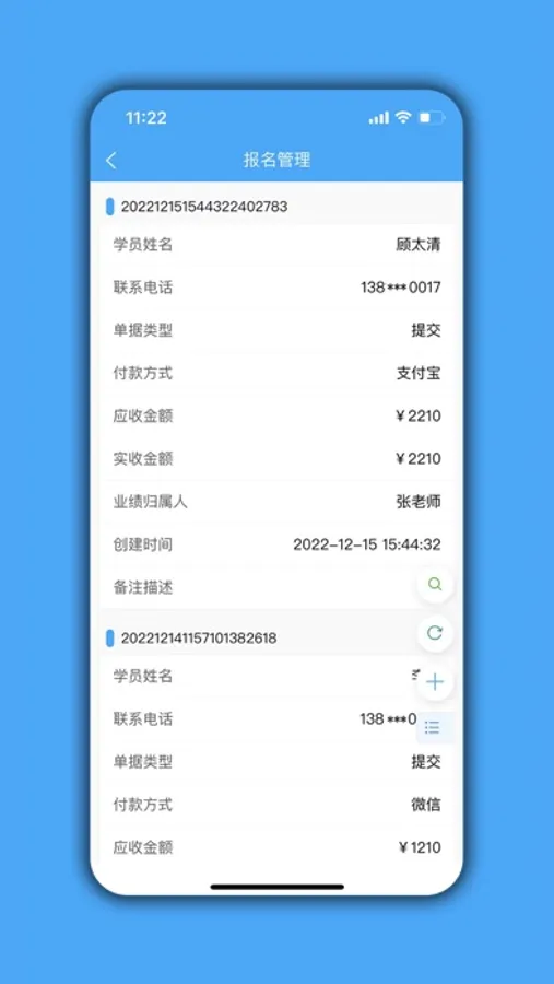 包含订单管理、收支明细、报读情况、消课记录、续费预警等功能。从不同维度统计收支信息、学员消课信息以及教师上课信息。通过记录付款方式整合资金来源,让每笔收入都有据可依。