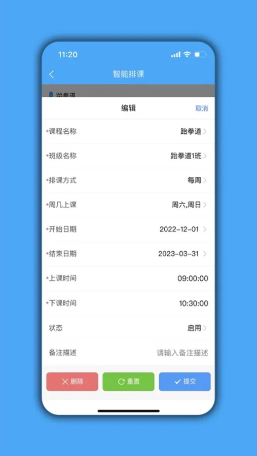 记录班级详情,排课信息,关联所有班级学员,日常班级课程考勤;课程管理,记录教师上课明细。