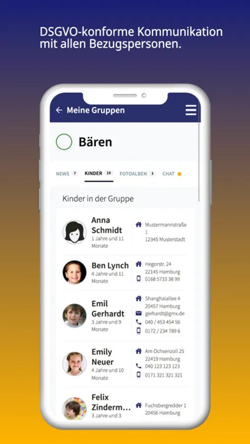 Notfallkontakte für Ausflüge, die neuesten Termine, wichtige Dateien, Fotoalben, Speisepläne, der Gruppenchat und sogar die Arbeitszeiterfassung können über die neue KigaRoo-App aufgerufen werden. Auf Wunsch auch auf Englisch.