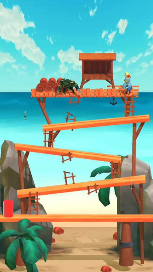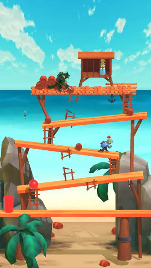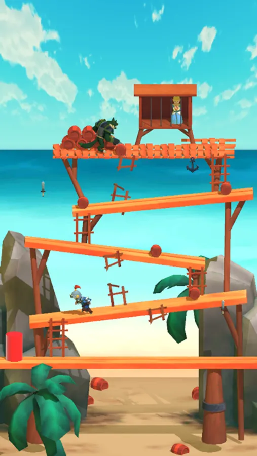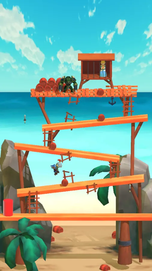 When climbing, Kong will tossing barrels at you, so you will have to quick jump over them to avoid a game over.