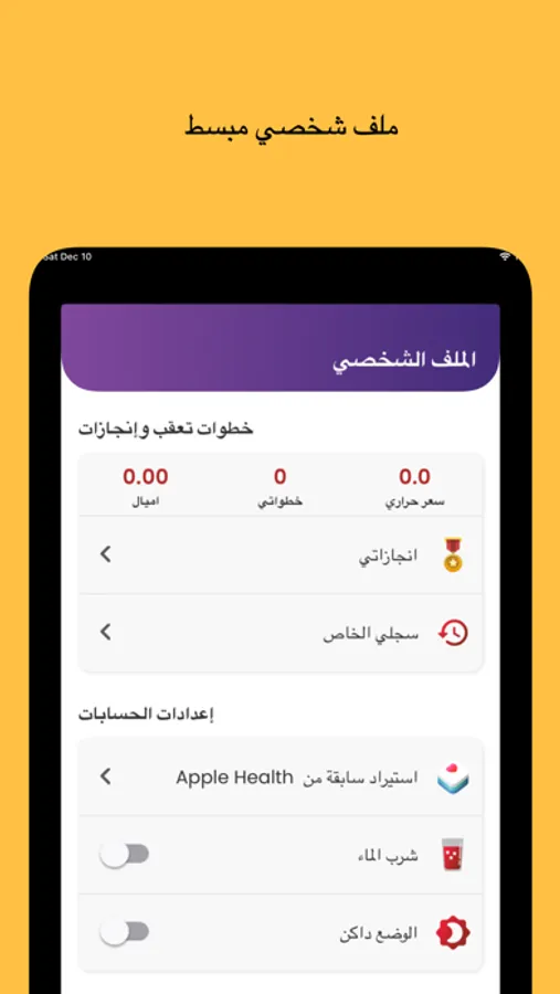 • Apple Health دعم تكامل .