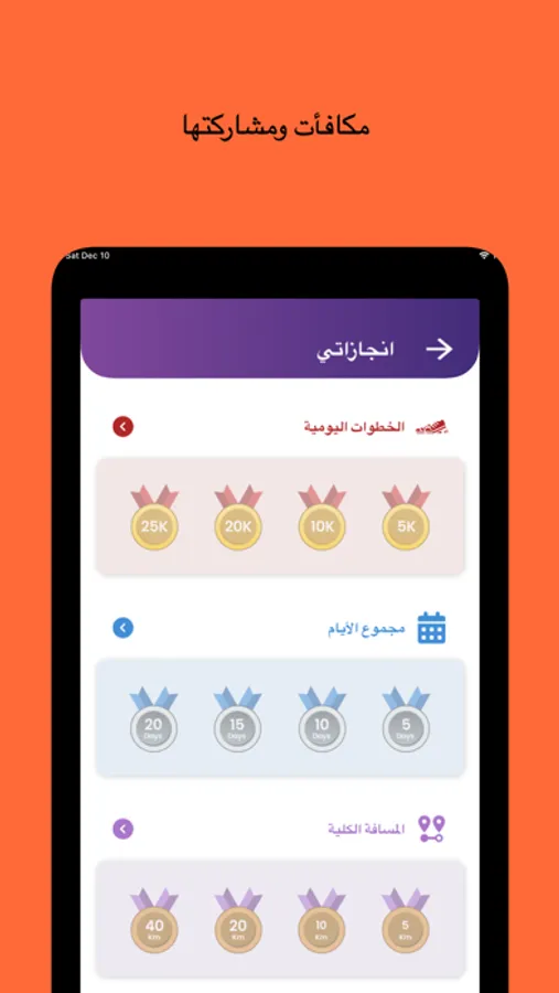 • تنبيك عند وصولك إلى هدف نشاطك اليومي من المشي والخطوات