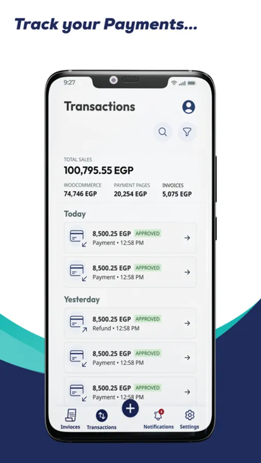 - Easily track the status of your payments with the ability to refund any transaction to your customer