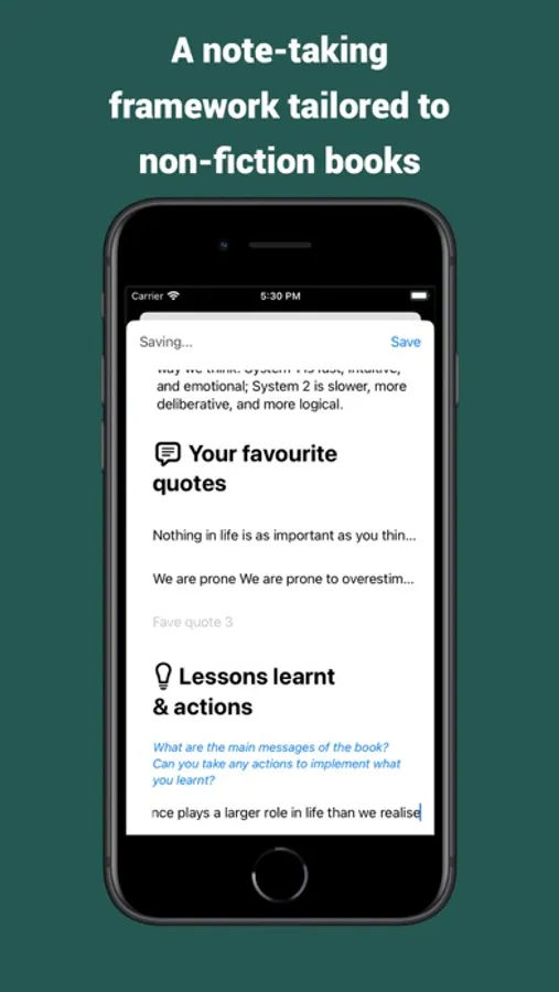 This note-taking app guides you in writing thoughtful summaries of non-fiction books to maximise the value you get from them.