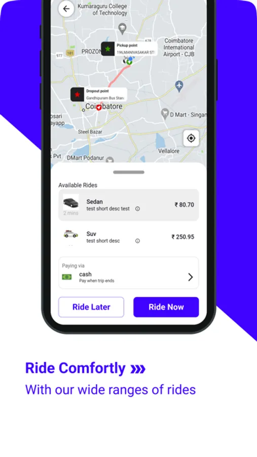 By pointing your preferred point of pickup location, destination and time, Tagxi Super User rapidly processes thousands of available options and picks the one that best suits you. User also can have a choice of choosing the vehicle types while booking.
