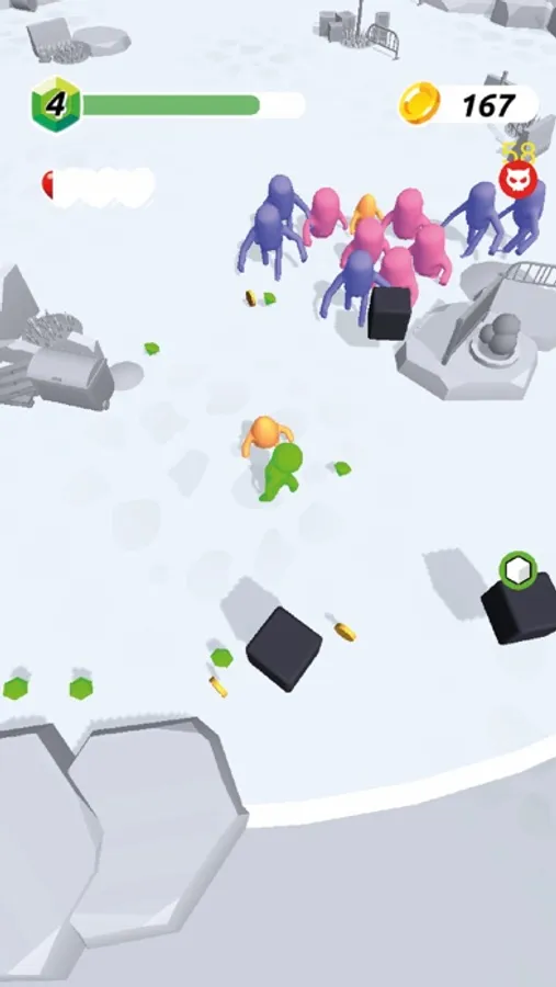You found yourself alone in the middle of a field surrounded by a crowd of monsters. The only weapon is a cube that shoots forward. Use the dice to defeat the monsters. Throw a cube at monsters and kill them getting crystals and coins for it. Pump the cube and yourself to protect the territory more effectively.