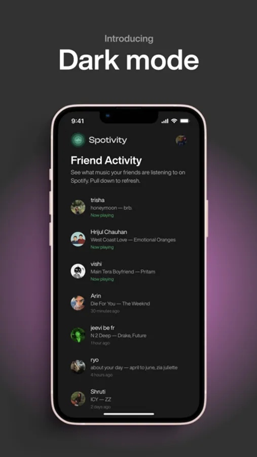 Gone are the days of having to log in to your desktop account just to see what your friends are jamming out to. With Spotivity, you can quickly and easily access your friend activity feed right from your phone.