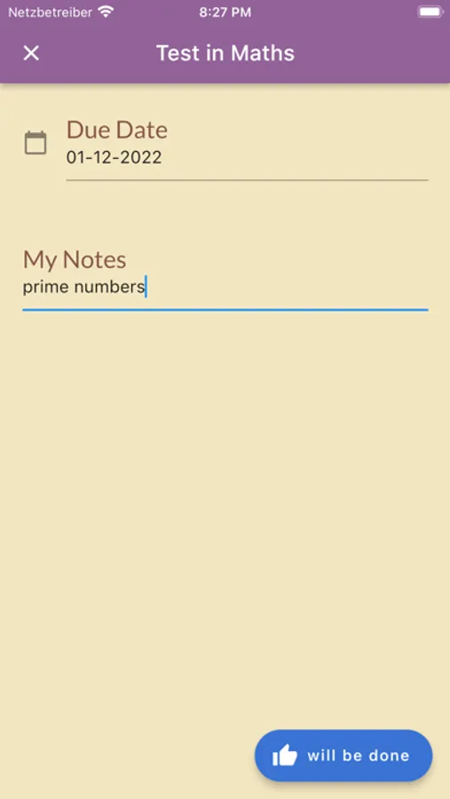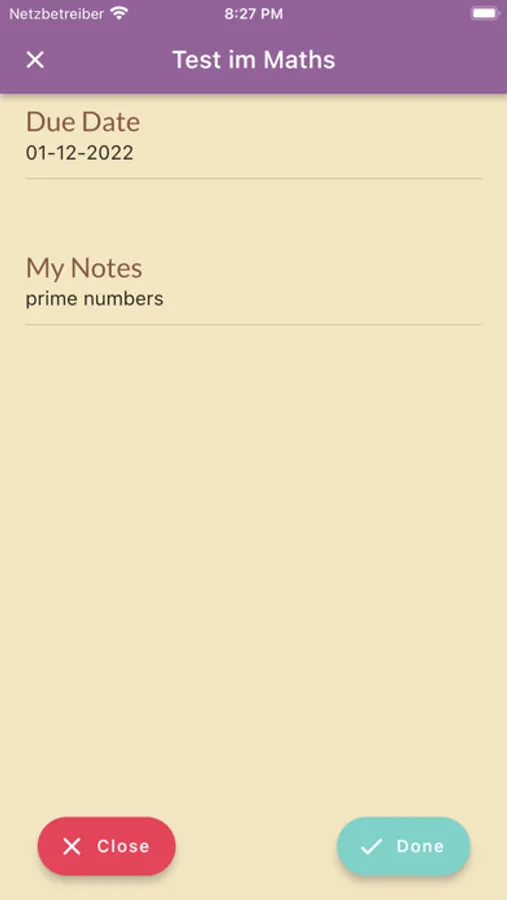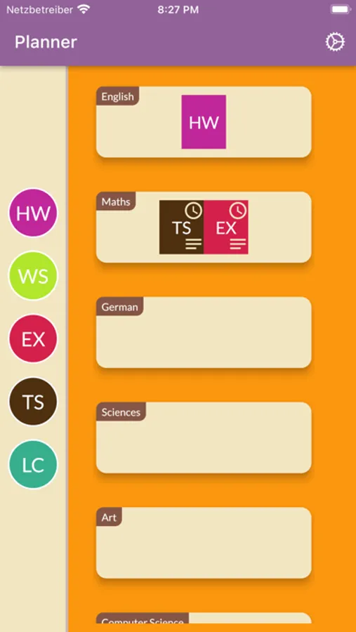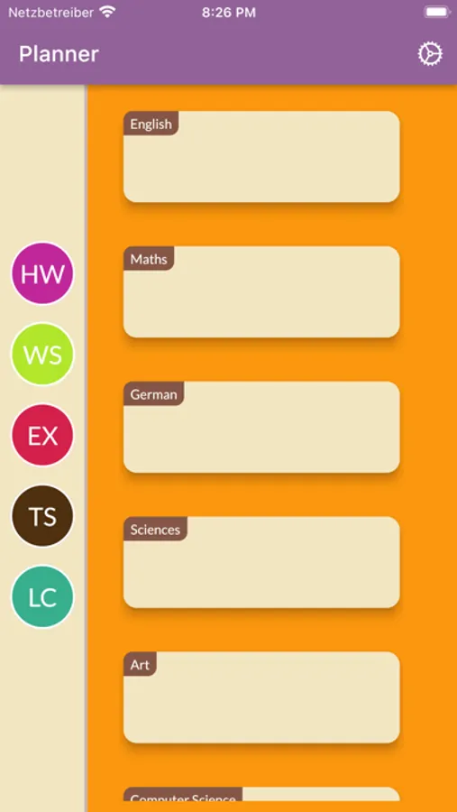 You can personalize the app to your liking. Simply go to the settings and create your school subjects and the task types..