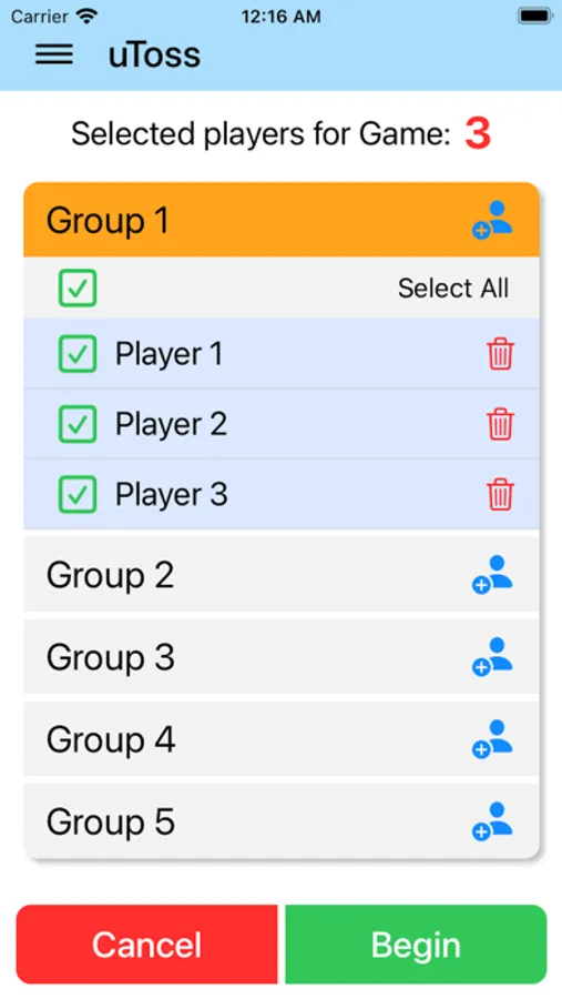 * Allows you to select the order of players (randomly, alphabetically, or manually).