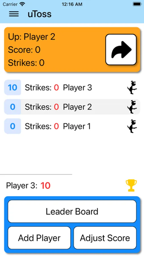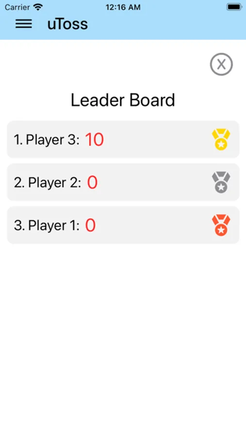 uToss is an indoor game very similar to Molkky, but with a 13th pin (Dog Pin) that increases the strategy of the game. The Dog Pin can help you (double your points if you hit your declared pin), but is also a risk (subtract points if you miss your declared pin). The uToss App incorporates the unique rules of uToss, or can be used for the standard Finnish game of Molkky. The app: