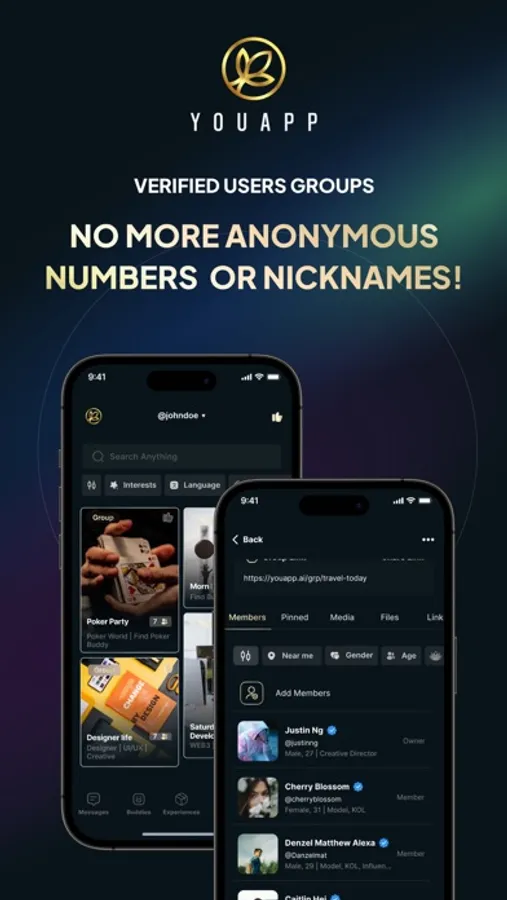Join YouApp and become a part of a growing community of individuals with diverse interests and a passion for leisure. Create or join groups to discuss upcoming music festivals, build your YOUnique profile, make new friends, and participate in unique dining experiences for groups of 6-12 people.