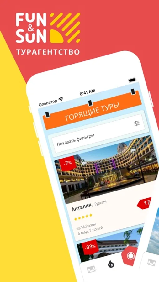 2.Горящие Туры: Любите сэкономить? Fun Sun предупредит вас о горящих турах и эксклюзивных акциях от туроператоров. Это отличный шанс сэкономить средства и отправиться в желаемое путешествие.