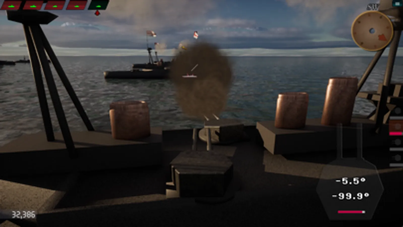 Ruler of the Waves 1916 is a naval combat game and turret-based shooter. The main gameplay involves aiming and firing the turrets. Since turrets take 30 seconds to reload, the player must utilize multiple turrets on multiple ships to maximize their firepower. Things are made more difficult due to the movement of the ships and the sea, and consistent accuracy will be a challenge to all but the most experienced gunner. Sink all the enemy boats to achieve victory - with bonus points earned for quickness.