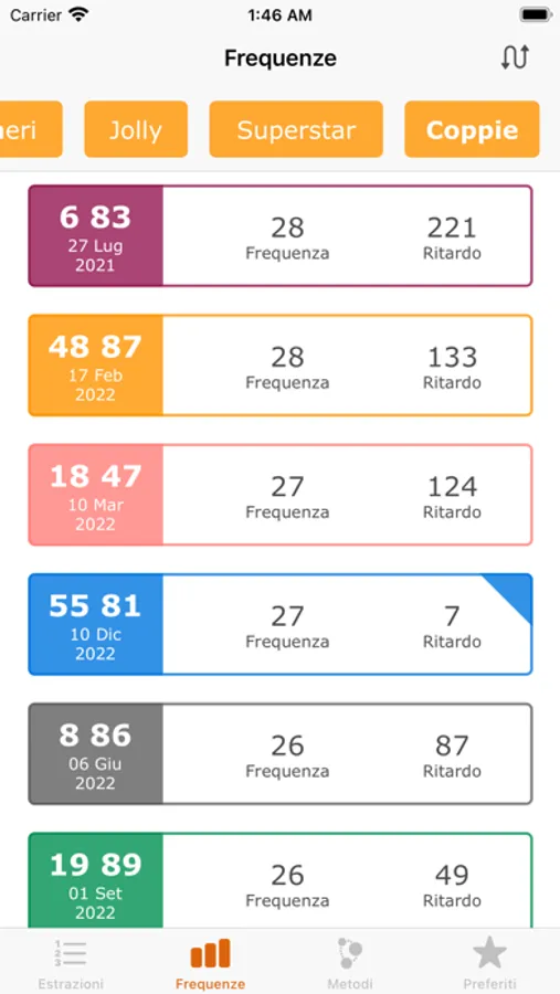 - Consultare tutte le statistiche aggiornate su i numeri frequenti o ritardatari