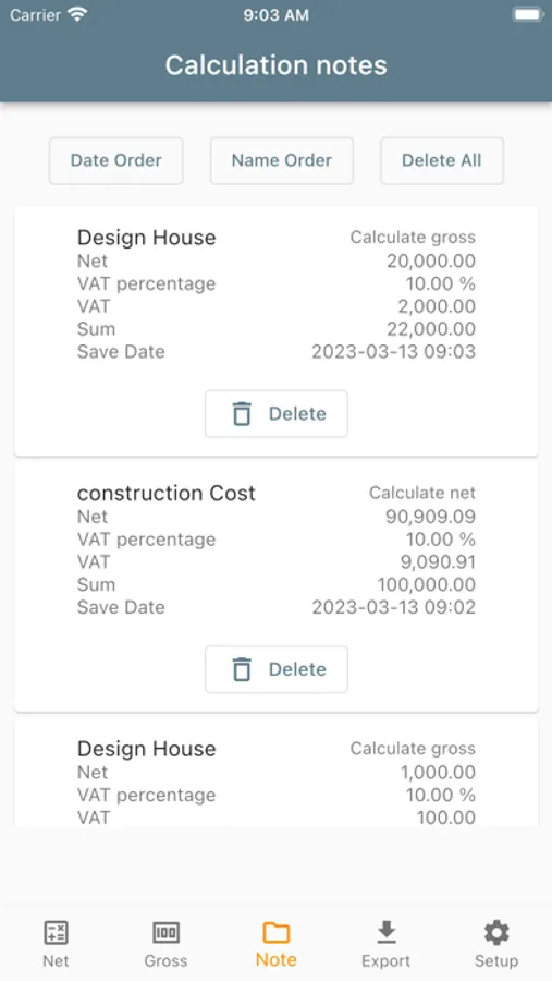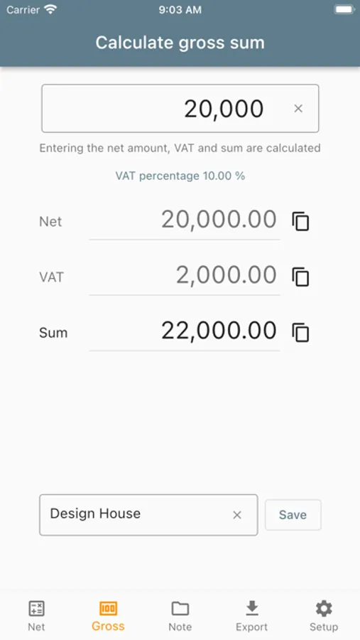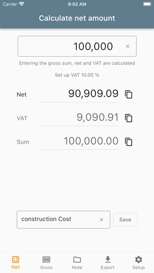 Calculate the net price and VAT separately from the gross including VAT, or calculate the gross with VAT. It is also a convenient app that you can refer to later by putting a title in the calculation result and saving it.