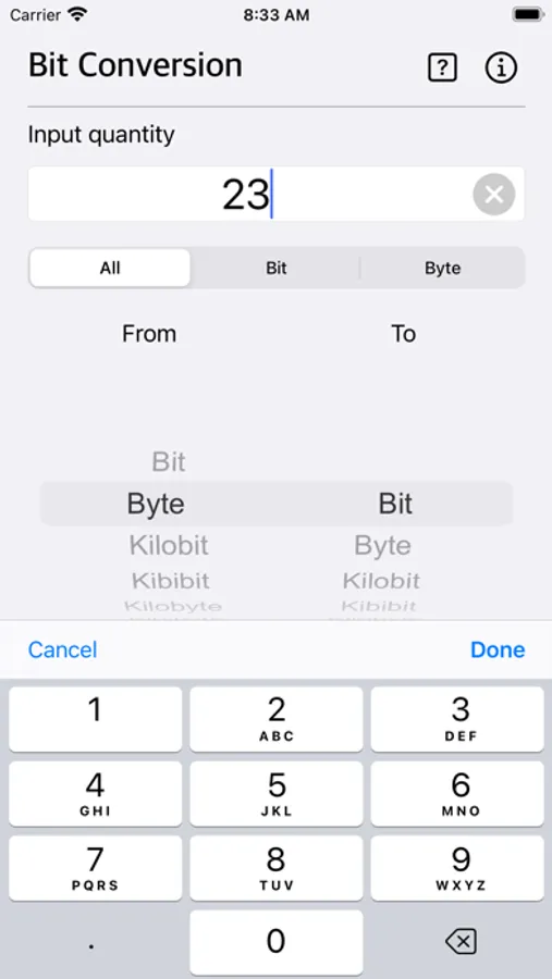 Bit Converter allows you to easily convert between bits, bytes, kilobits, kilobytes, megabits, megabytes, gigabits, gigabytes, terabits, terabytes, petabits, petabytes, exabits, exabytes, zettabits, zettabytes, yottabits, yottabytes.