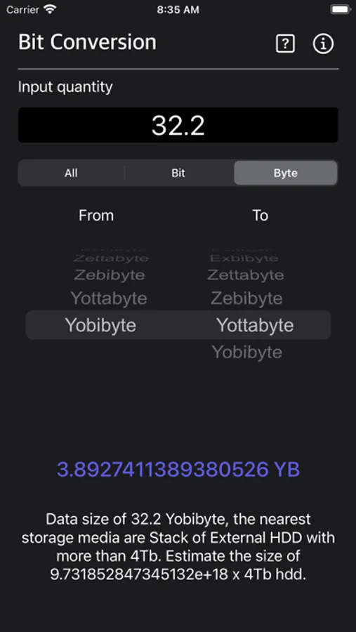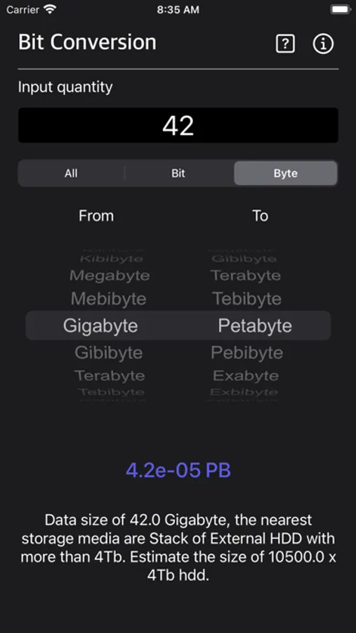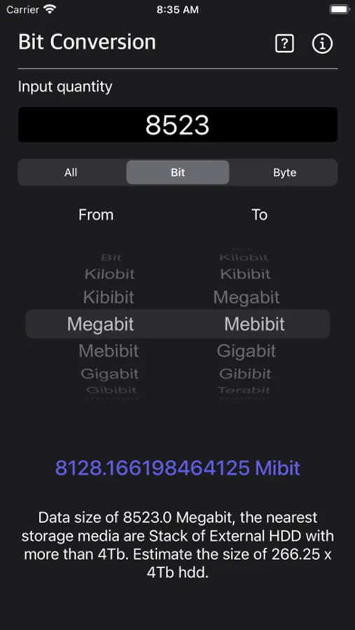 Bit Converter is a tiny app that conserves storage space and also work offline.