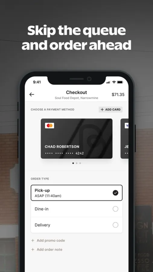 Forgot your wallet? No worries, order seamlessly with secure in-app payment.