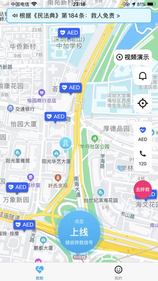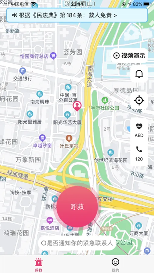一键呼救APP,主要实现了一键呼救功能,APP内注册有数量众多的急救人员,用户发起一键呼救时,APP会向附近范围内发送急救消息,当急救人员接收到附近的呼救信息后,将会快时间赶往现场参与进行施救。