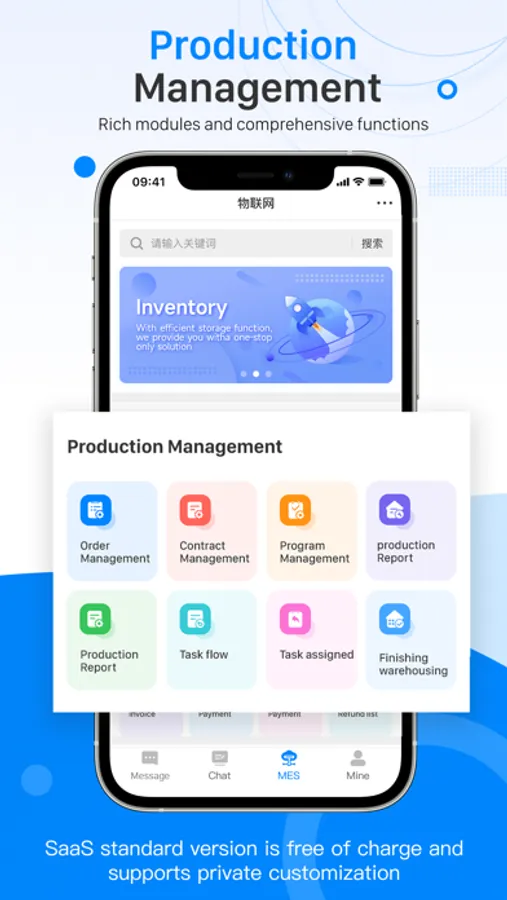 Work Order Management Users can perform work order creation, packaging Bom selection, work order quantity, completion deadline, work order scheduling configuration, and process route viewing operations for the orders of the factory