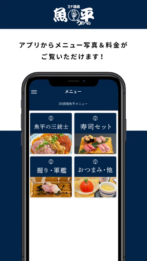 そのほかにも「39酒場 魚平」のSNSにボタン一つで飛べる機能や、さまざまなメニューをご覧いただける機能など、「39酒場 魚平」をご利用されるお客様にとって便利な機能がたくさんです!