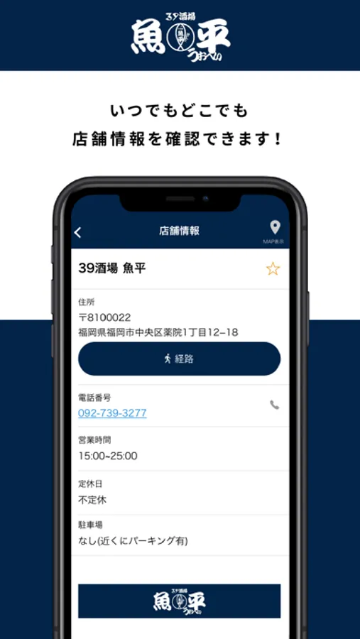 福岡市中央区薬院にある魚と日本酒を愛する寿司酒場「39酒場 魚平」の公式アプリです。