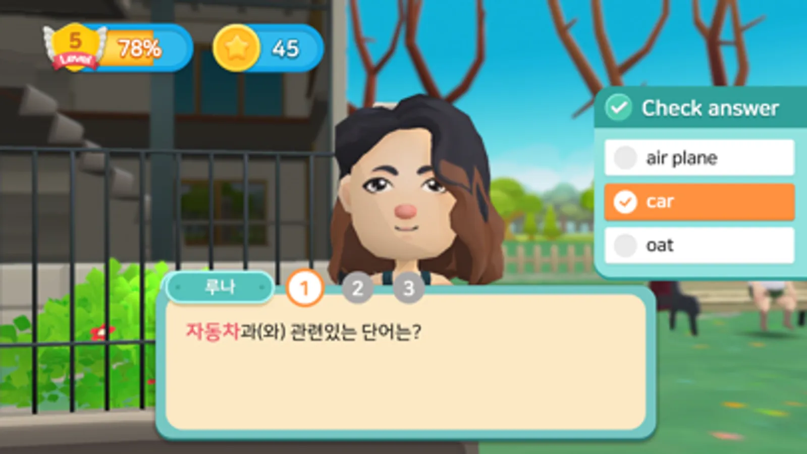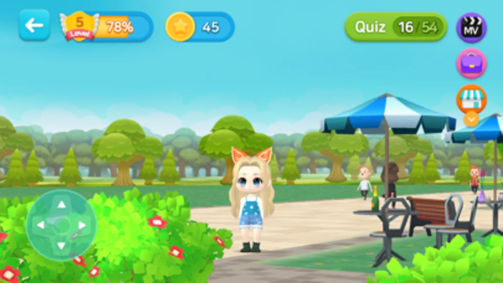 3. 맵에 있는 다양한 캐릭터를 만나 이야기를 나눌 수 있으며, 최근 학습한 내용을 퀴즈를 통해 다시 확인하고 추가 포인트 획득도 가능합니다.