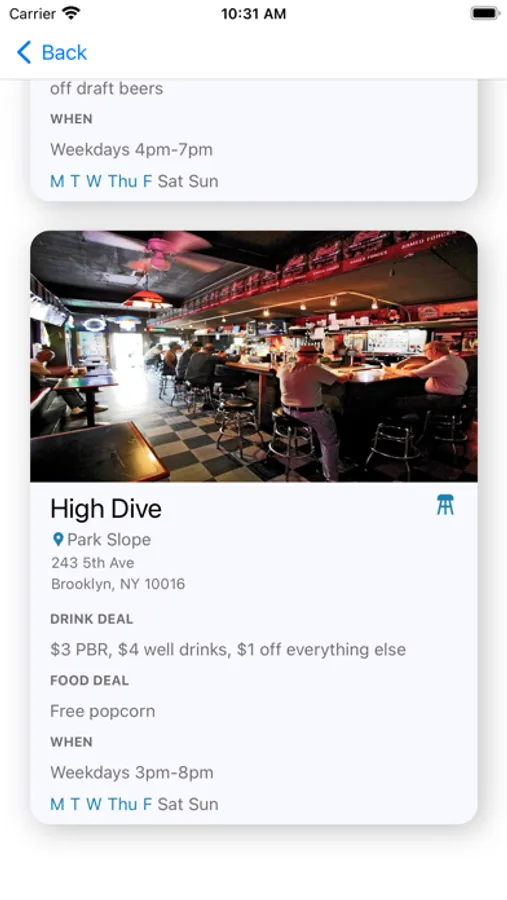 Tired of clicking mindlessly on random sites for happy hours in NYC? Binge NYC is your one stop shop for searching all the happy hours in NYC. A curated list of happy hours currently displayed for Manhattan and many parts of Brooklyn. Search happy hours by day, type (cocktail, dive bar, sports bar), or by neighborhood!