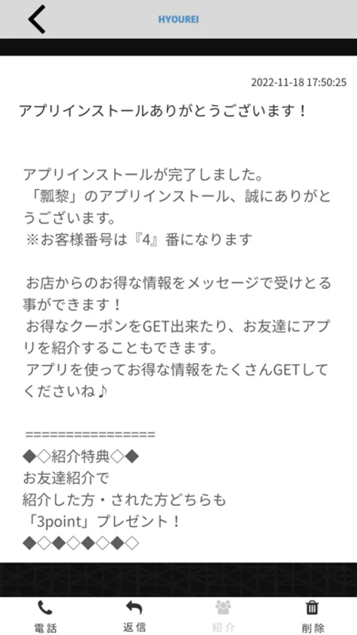瓢黎のアプリをSNSを通じてお友達に紹介する事ができます。